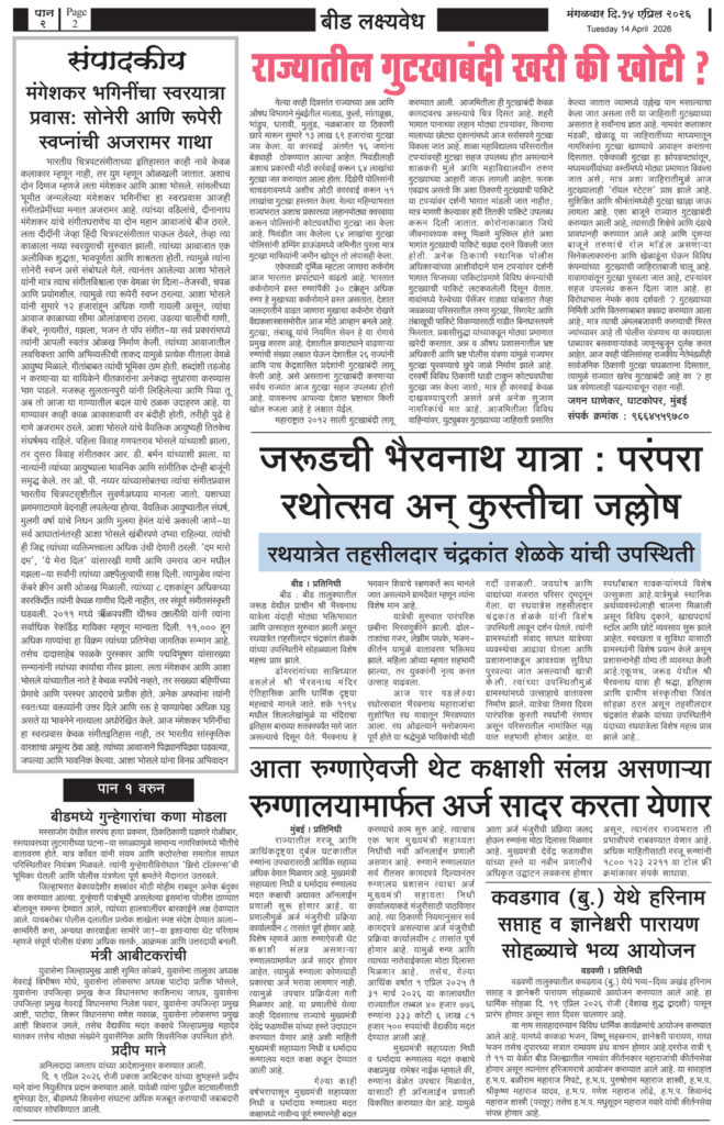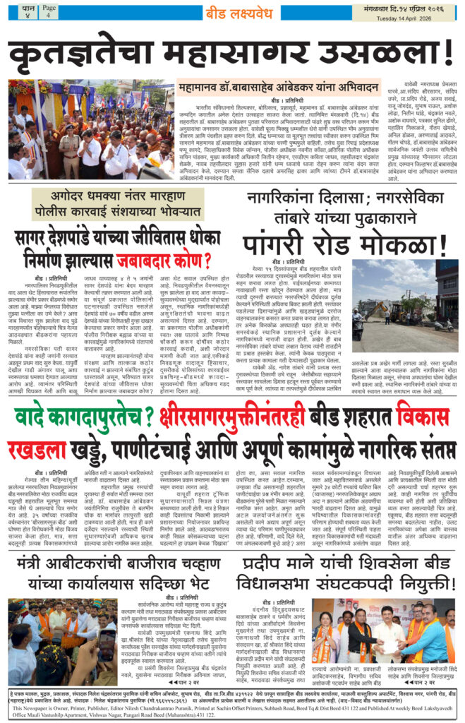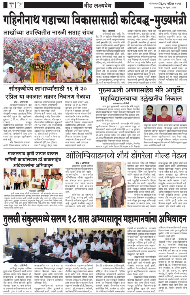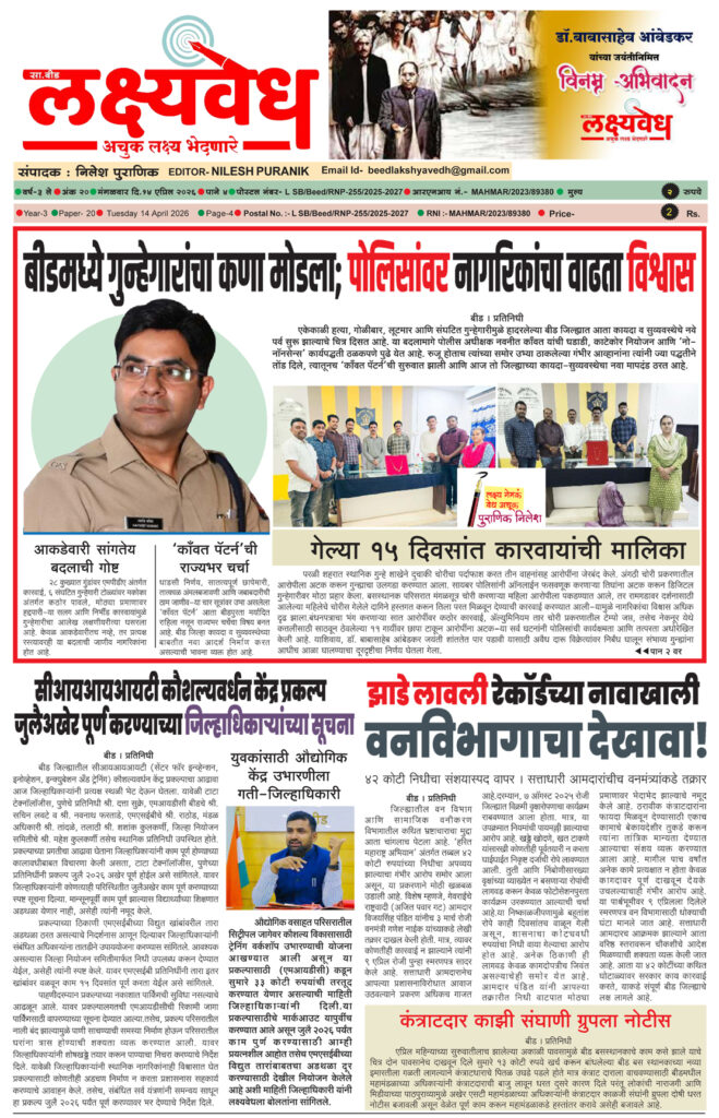 वाचा आजदि. 14 एप्रिल 2026 रोजीचा बीड लक्ष्यवेध
