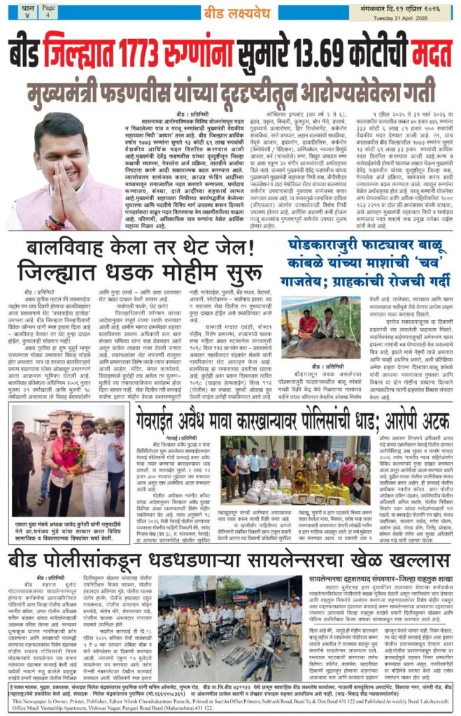 वाचा आजदि. 21 एप्रिल 2026 रोजीचा बीड लक्ष्यवेध